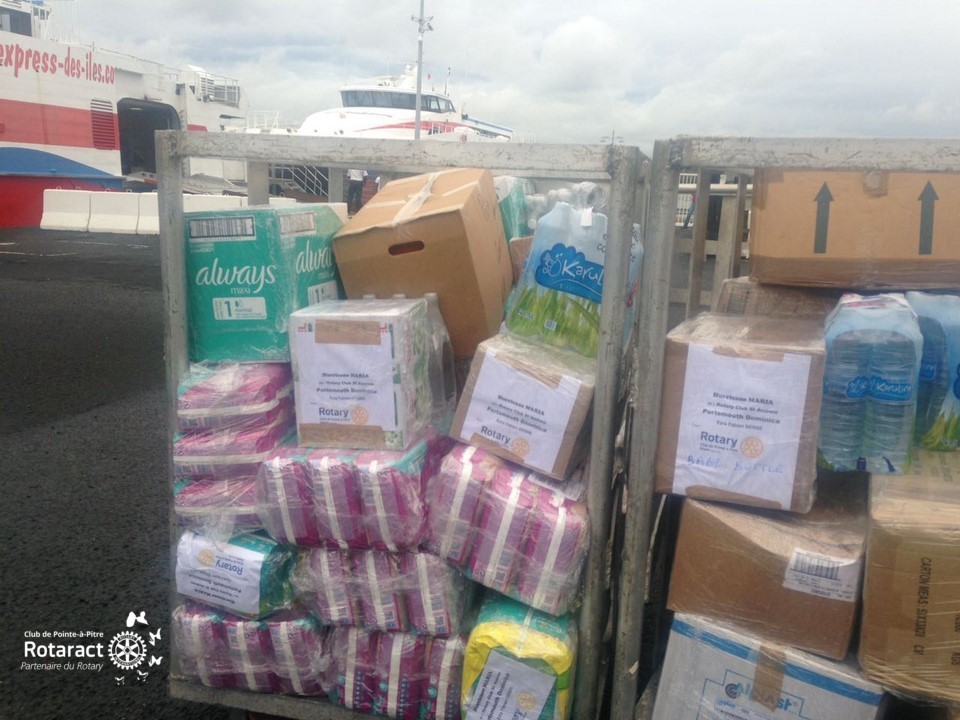 Ainsi, après avoir acheté le matériel de nettoyage et récupéré les denrées précédemment collectées, ce sont une trentaine d’hommes et de femmes, conduits par la Présidente du club Wylène LEDRECK, Midji VERDOL et la Vice-Présidente du club Bettina MARIAN, qui se sont rendus à la Dominique.
